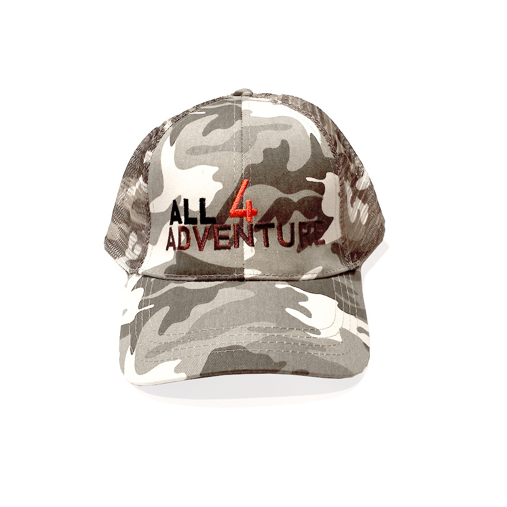 The camouflage style cap has a canvas fabric with mesh sides which will keep you from getting too hot. One-size-fits-most with an adjustable strip in the back and embroidered logo.
